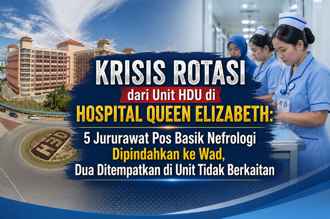 Satu lagi isu yang semakin hangat diperkatakan dalam kalangan staf di Hospital Queen Elizabeth melibatkan rotasi jururawat yang mempunyai kelayakan pos basik nefrologi dari unit HDU.